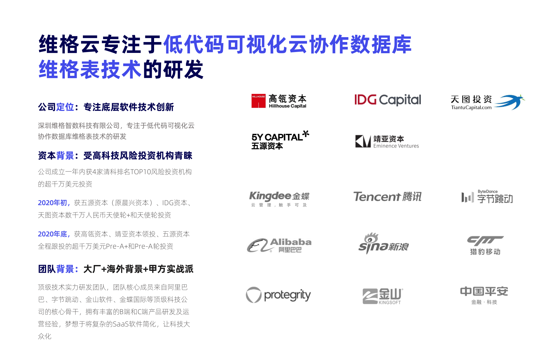 vika 维格公司在创立的短短一年内先后获得来自IDG资本、天图资本、五源资本(原晨兴资本)、靖亚资本、高瓴创投5家一线投资机构的4轮投资,公司估值超4亿。