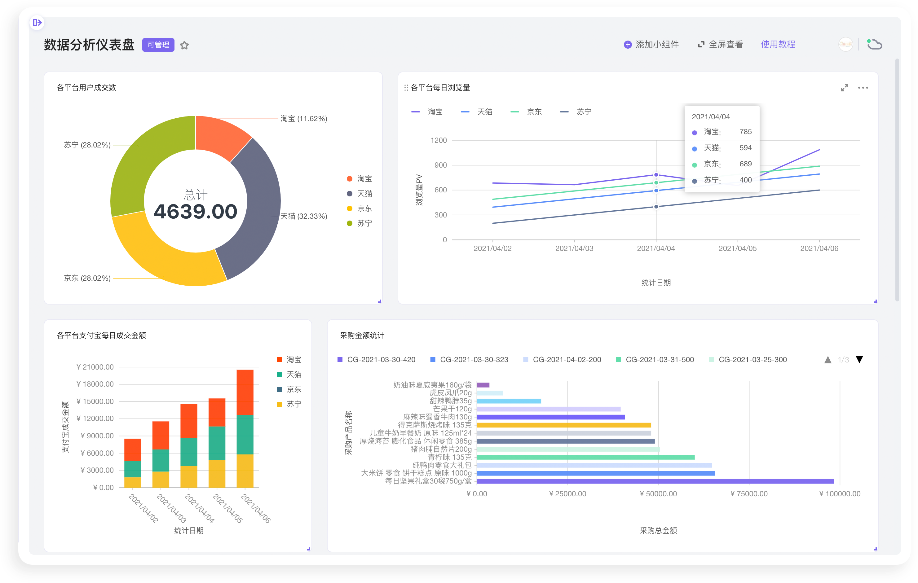- 多维数据交叉管理,轻量化看板快速进行业务分析