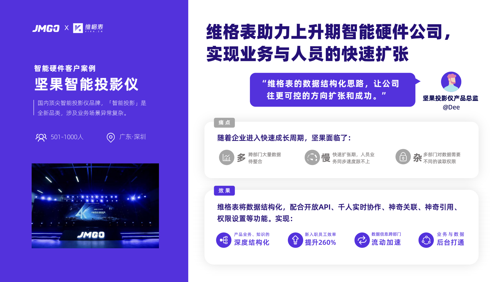 主营产品vika维格表于 2020 年 10 月发布公测版,目前已服务了超过28个国家的超15000家企业,应用场景包括项目管理、市场运营、敏捷开发、客户管理、人事行政等1000多种业务场景的自动化管理。