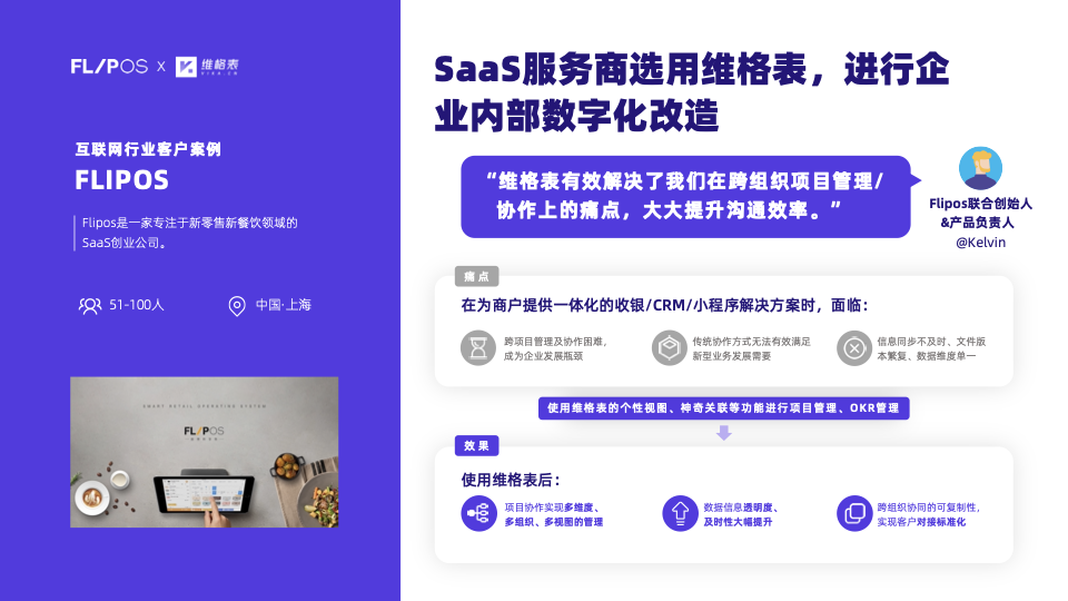 Flipos是一家专注于新零售新餐饮领域的SaaS创业公司,主要客户包括manner、seesaw等;