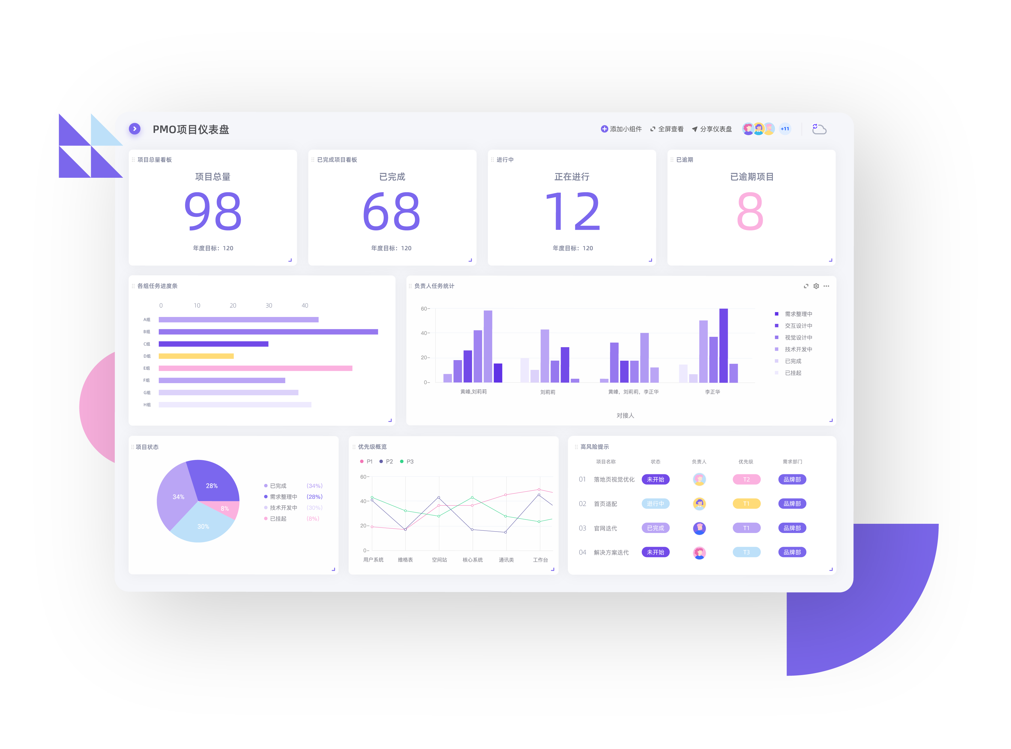 - 全方位把控项目群进度,灵活敏捷的数据追踪