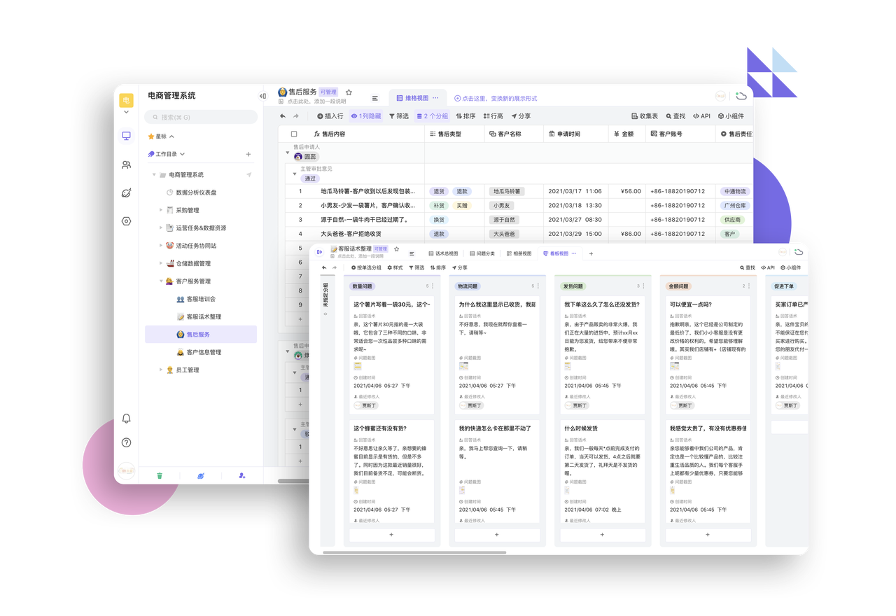 基于面向 API 的多维表格,一种类似于电子表格,但又比表格更强大的数据生产力工具,集 Excel 表、数据库于一体,是一个能够搭建软件的工具,激发每个用户和企业员工的数字化创造力。